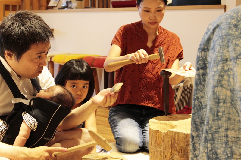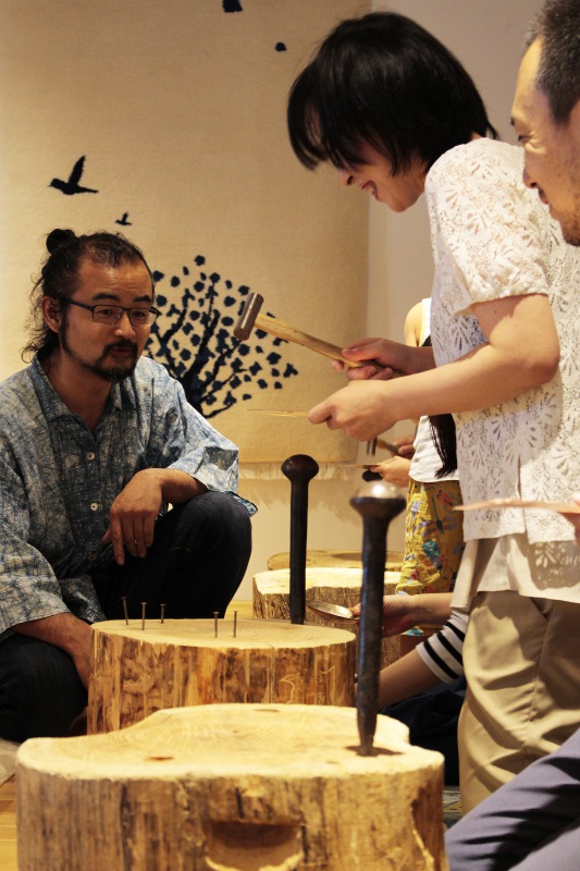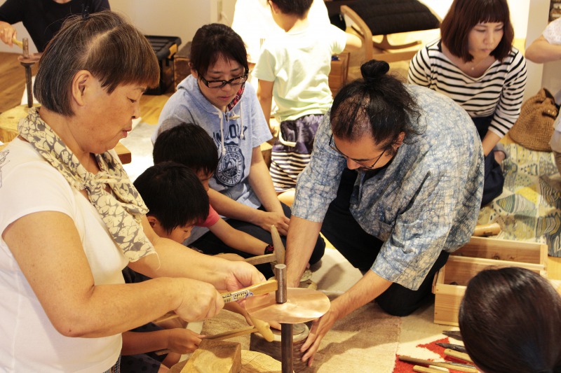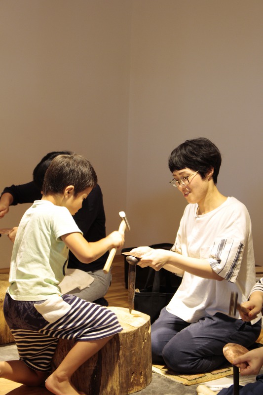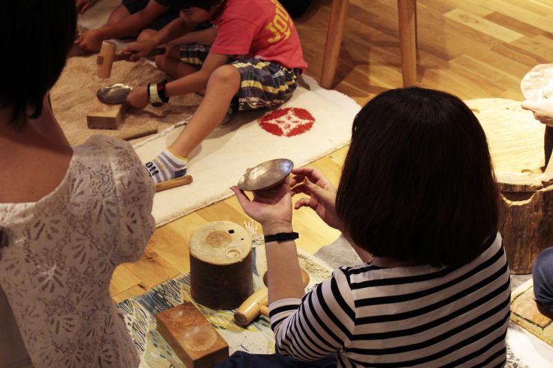 おばあちゃんと一緒に銅をたたいてみたり、大人の方々も一心不乱、無我夢中!