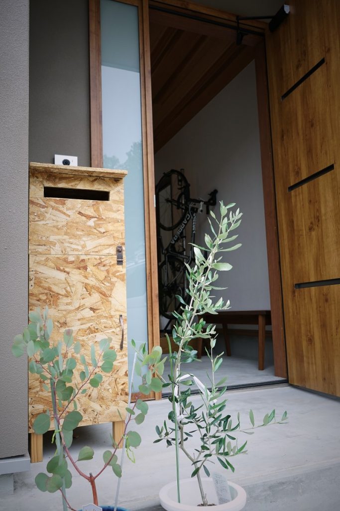 そのまま外に向かい、振り返るとお客様がDIYされたポストがありました。
