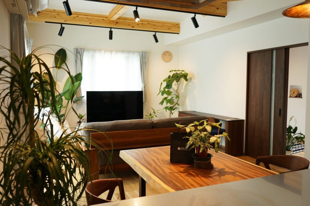 いやカッコ良すぎ!無垢の家具と植物の相性は最強です!
