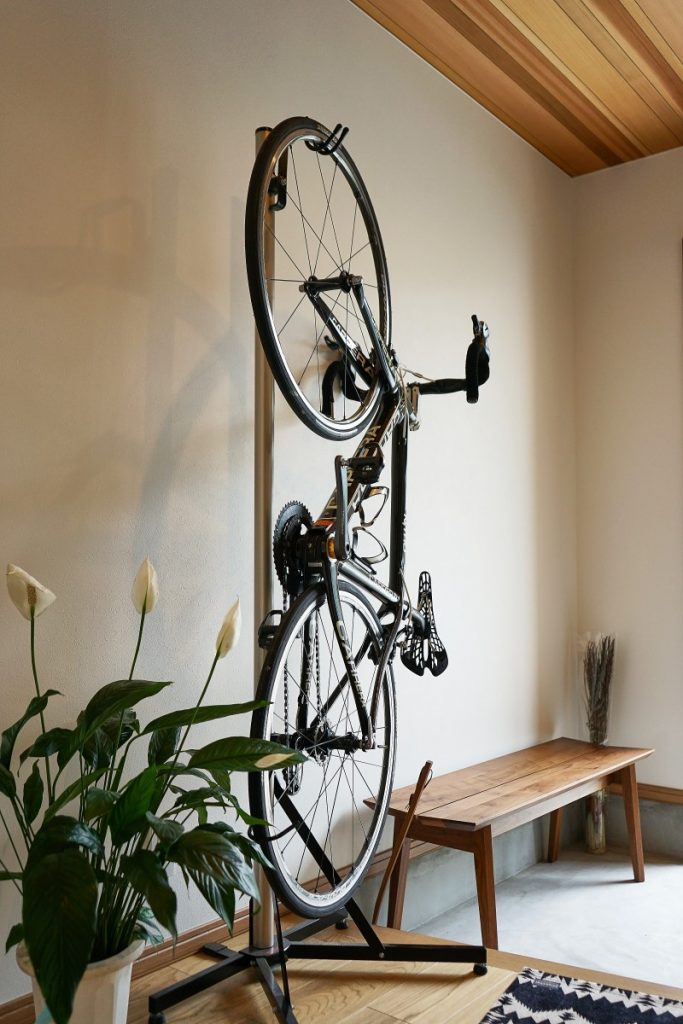 そしてリビングからぬけ、玄関に目を向けるとこちらもSOLID、ベンチが実は置かれているんですね。