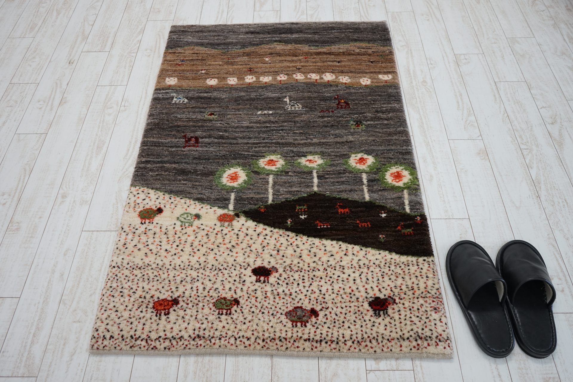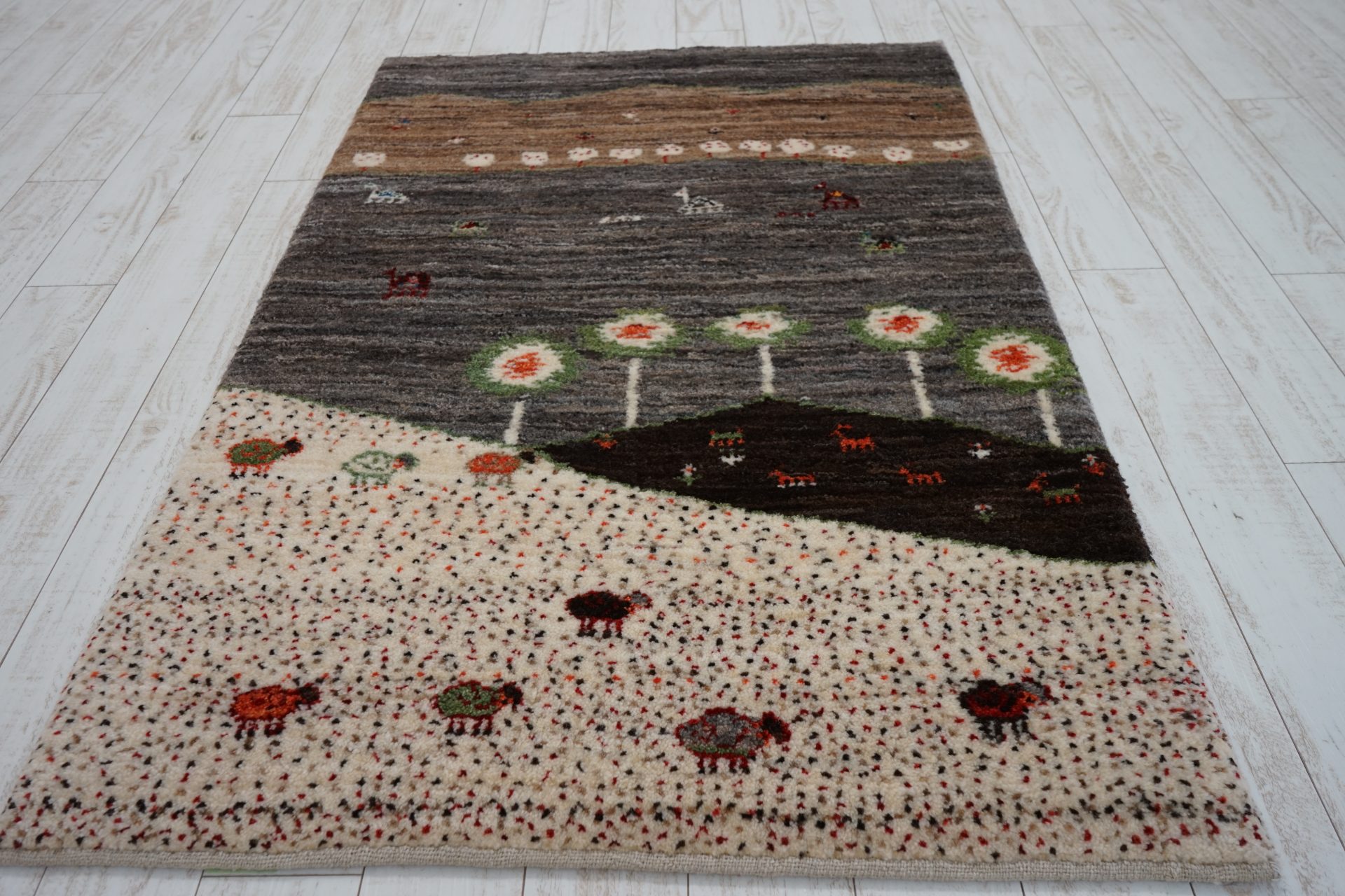 モフモフの毛をまとった羊たちがとても可愛らしいギャッベです。