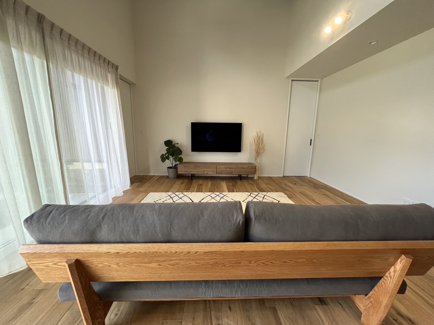 床の色、テレビボードのデザイン、リビングの雰囲気に見事に合っています。
