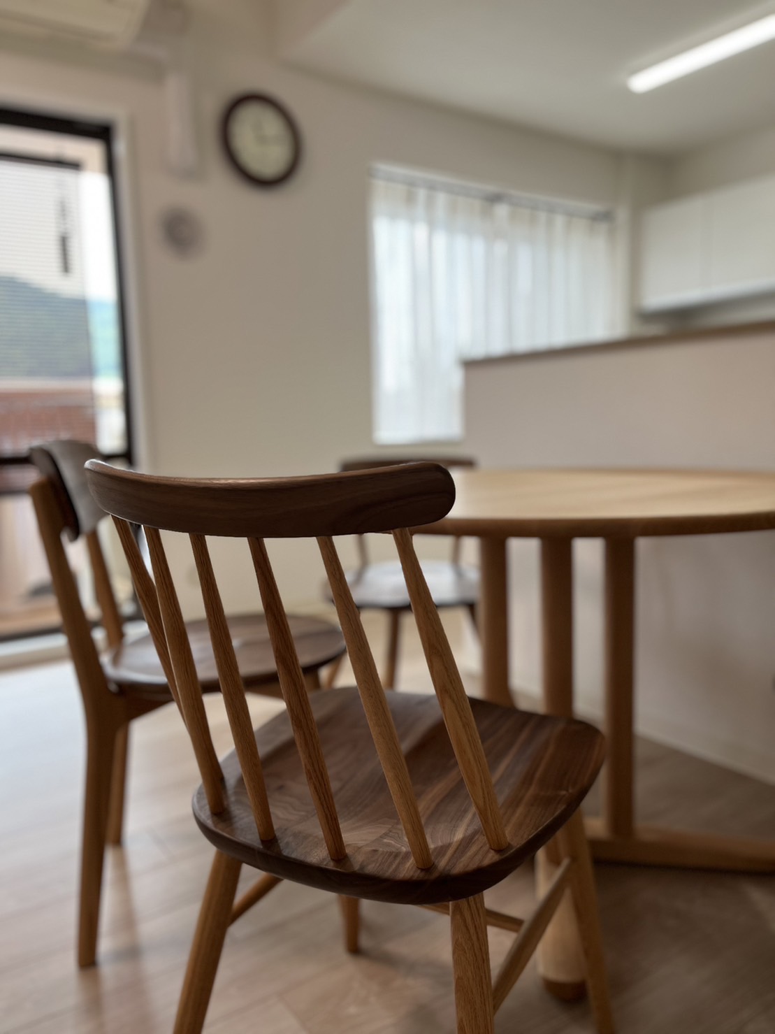 椅子は色んなデザインを、ツートンコーディネートで合わせました。