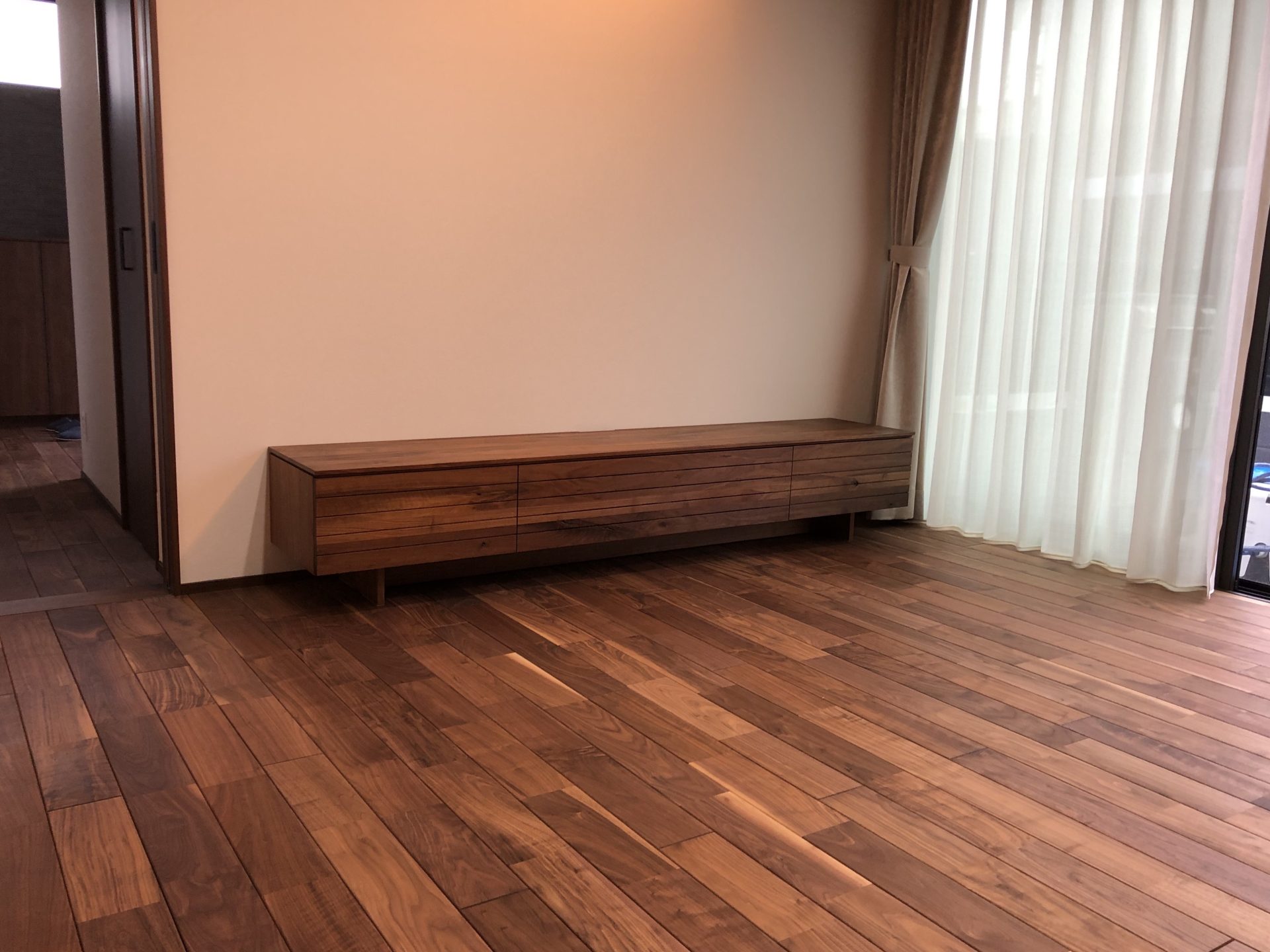 ウォールナットの床材に合わせることで、より一層カッコよく落ち着きのある空間になりました。