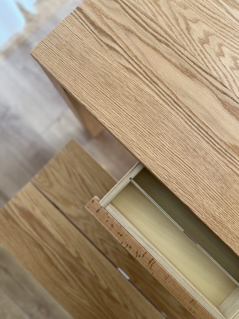 そして引出し付きです。ちょっとした収納があれば、お食事の際にもリモコンなどサッとしまえて助かる~♪