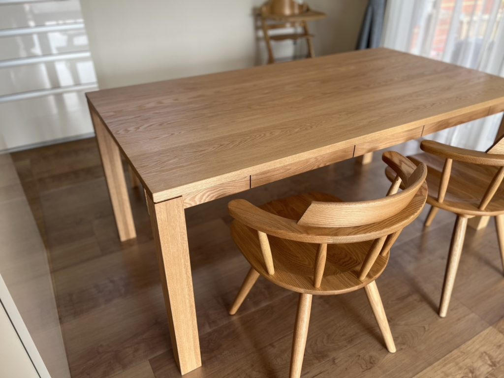 オーク天然木無垢材の良い所をぎゅっと詰め込んだようなテーブルです。