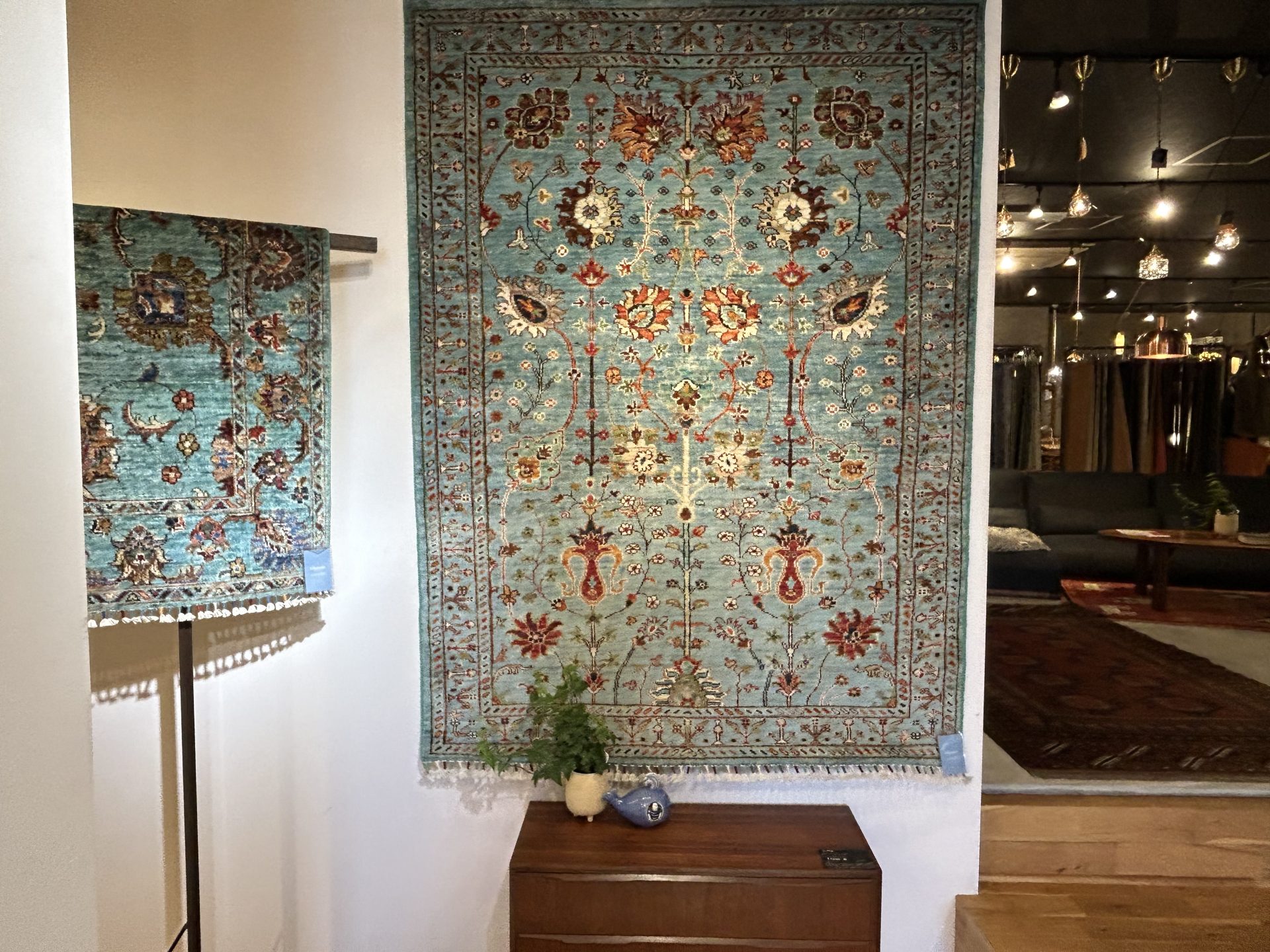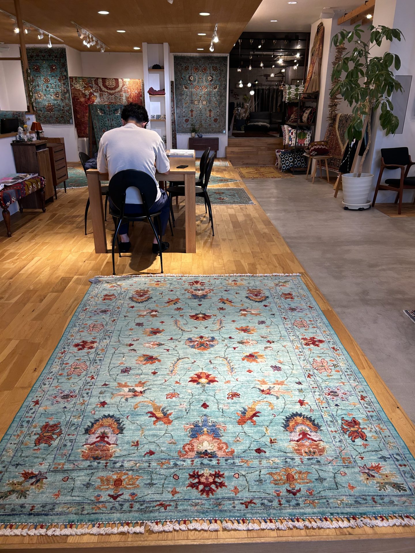 この度の初めてのイベントでは、現地でもそう多くないターコイズ色のガズニン絨毯を精一杯、集めてみました。