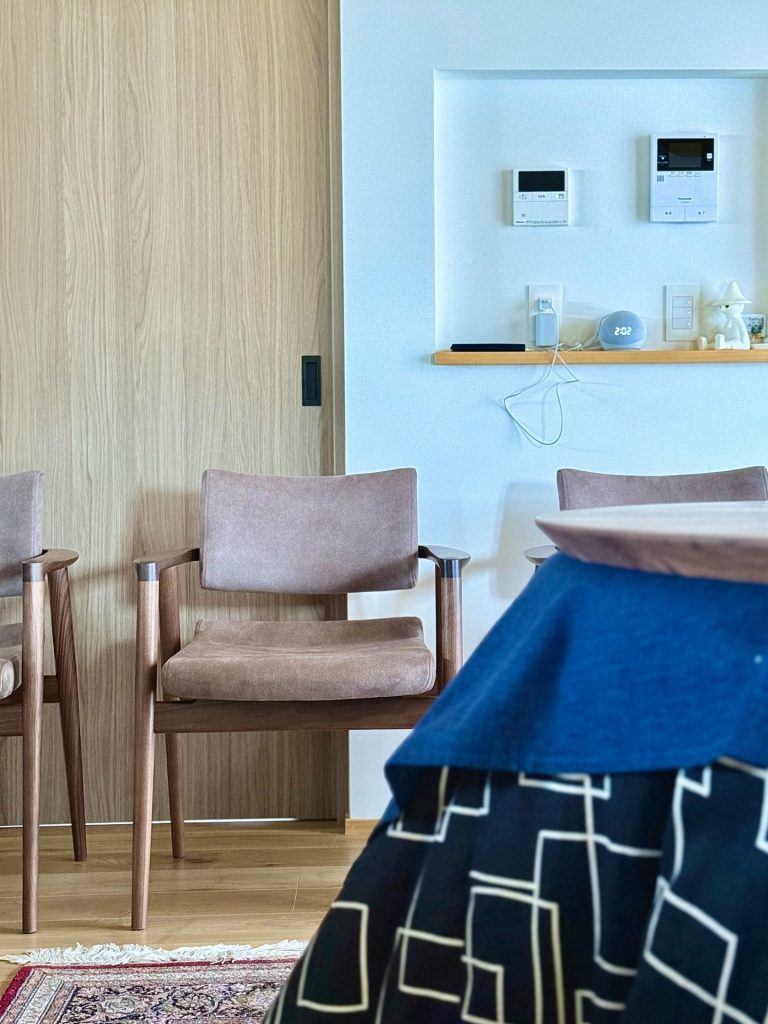 特注の為少々お時間は頂きましたが、天然木の美しさを活かしつつ、実用的なダイニング兼用コタツが生まれました。