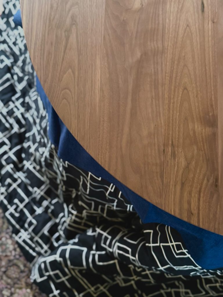 そして出来上がったのがこちらの120φ・ウォールナット無垢材天板のコタツと