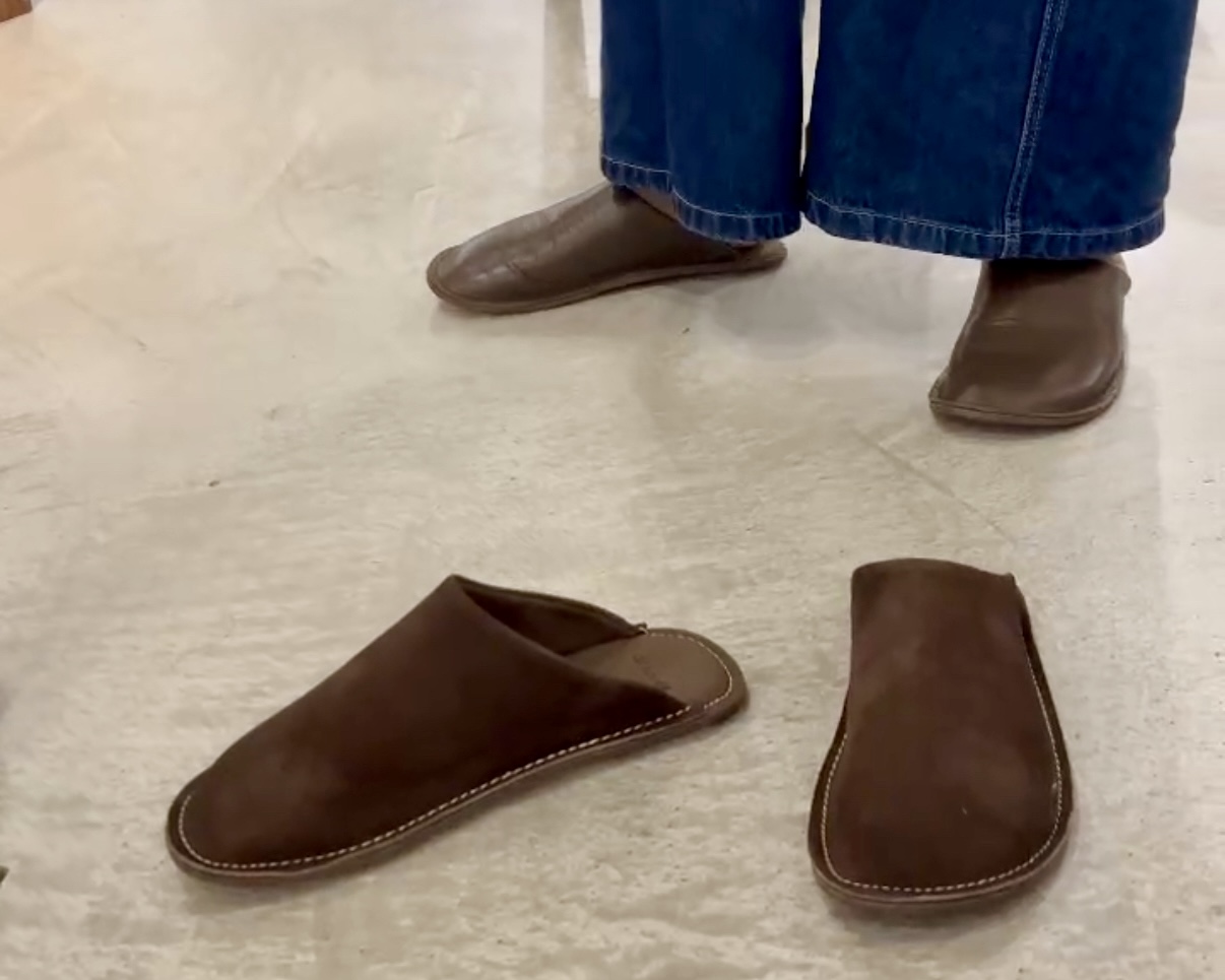 心の中でレザーのスリッパにする!と決めていたものの、いざ履いてみるとベロアの方が自分に合っていて。