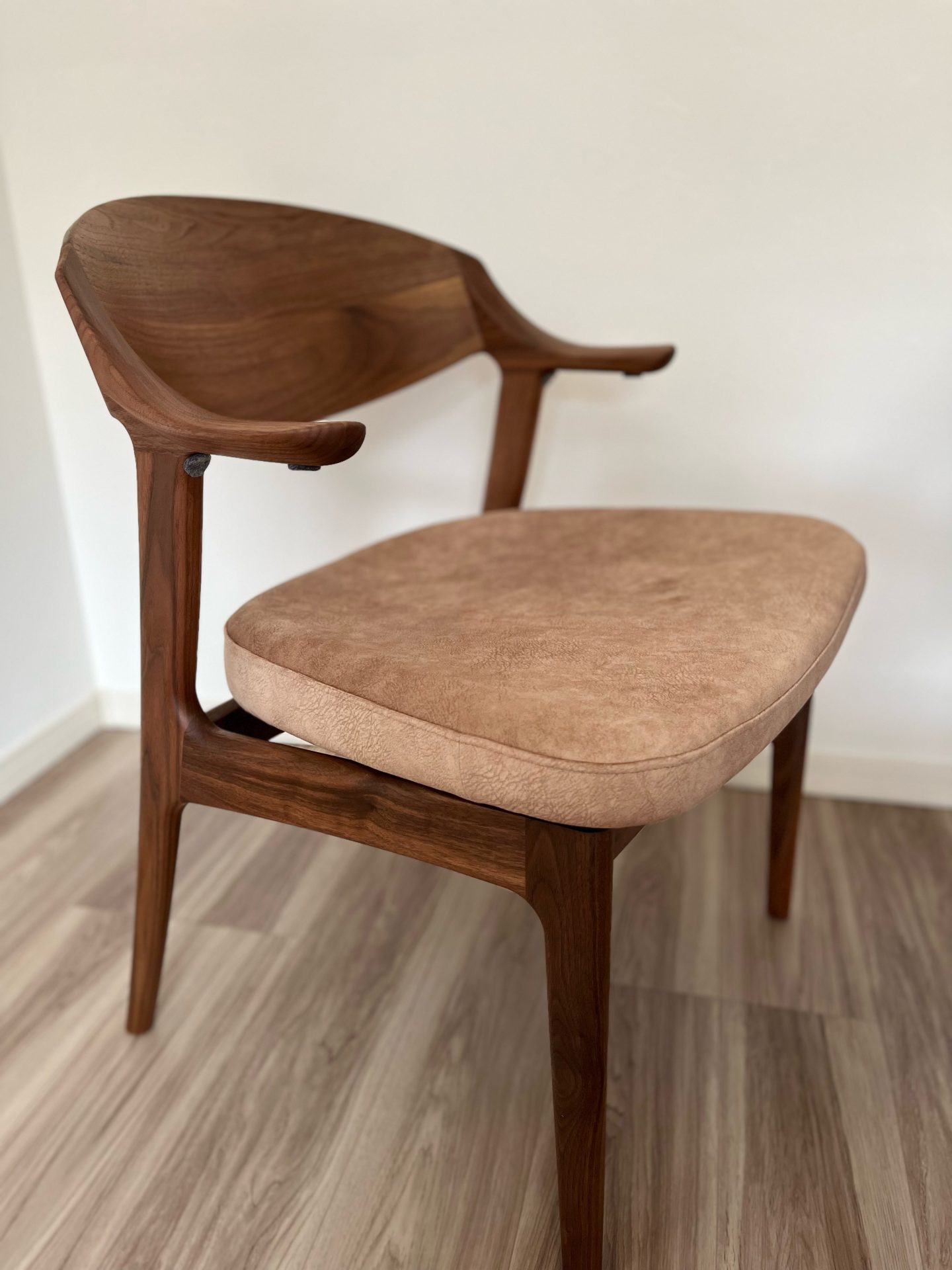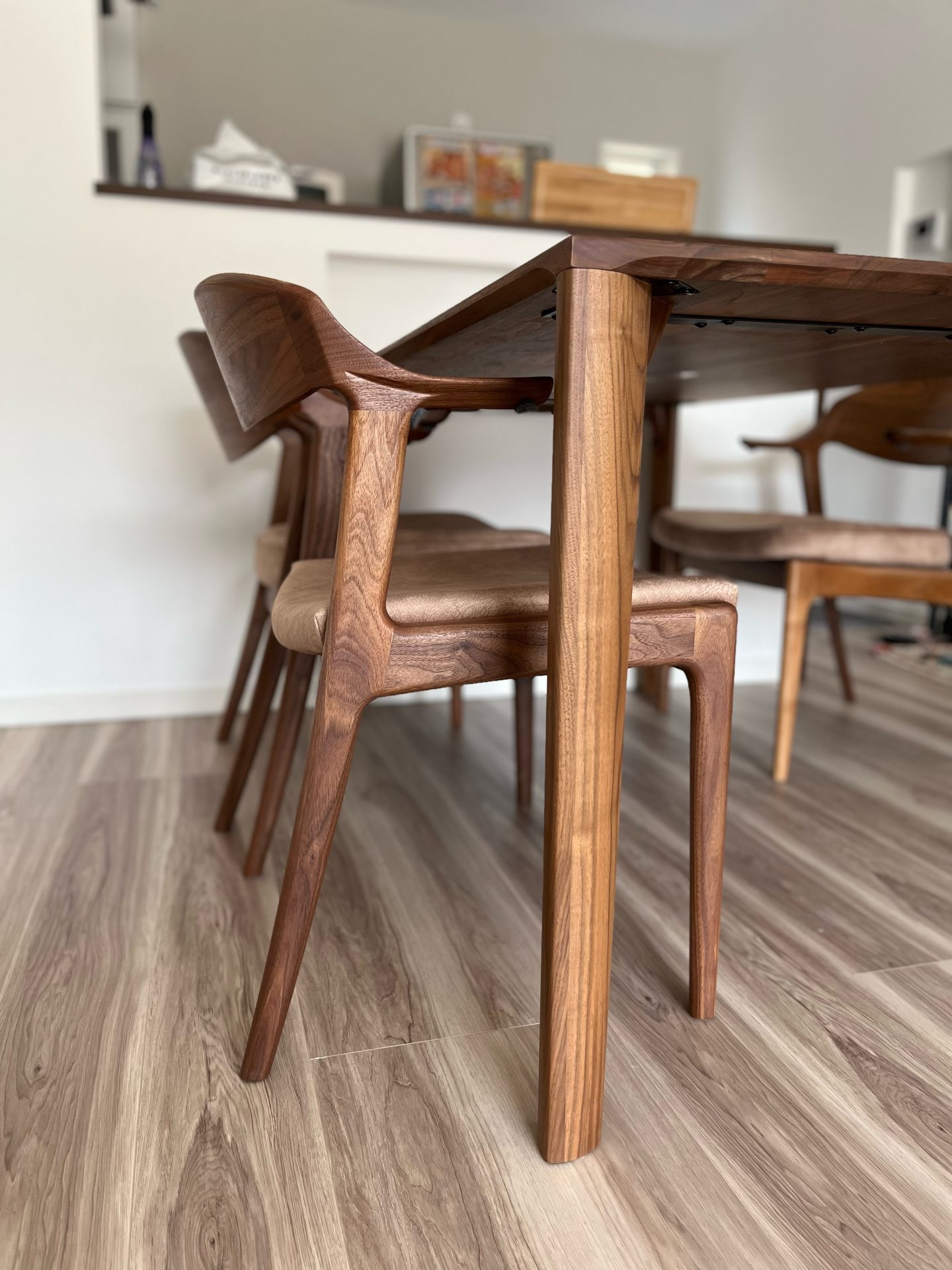 明るい雰囲気のお部屋に、ウオールナット材無垢の
