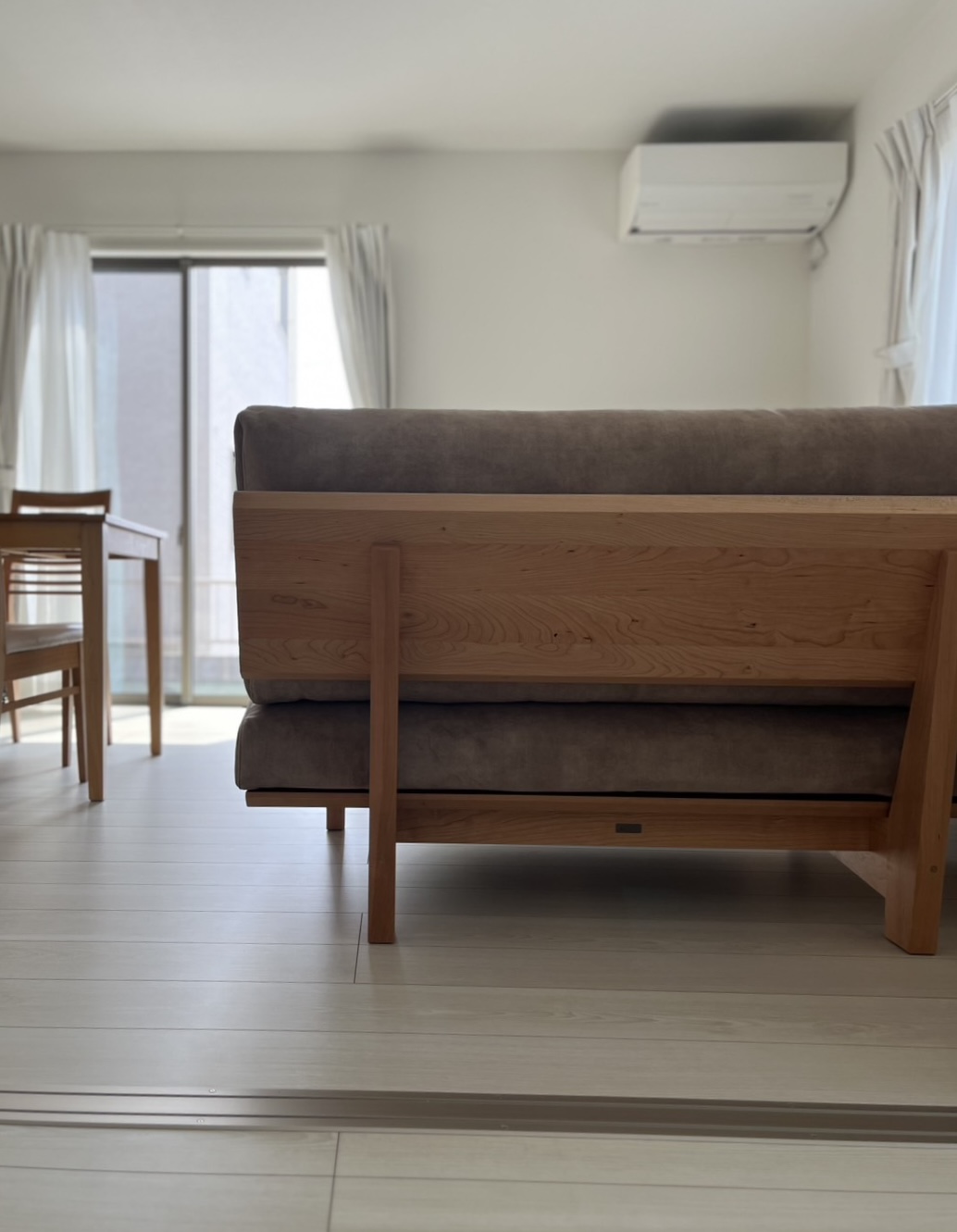 家族構成も踏まえて、2人掛けソファー(幅120cm)とカウチソファー(幅70cm)をL字に組み合わせました。