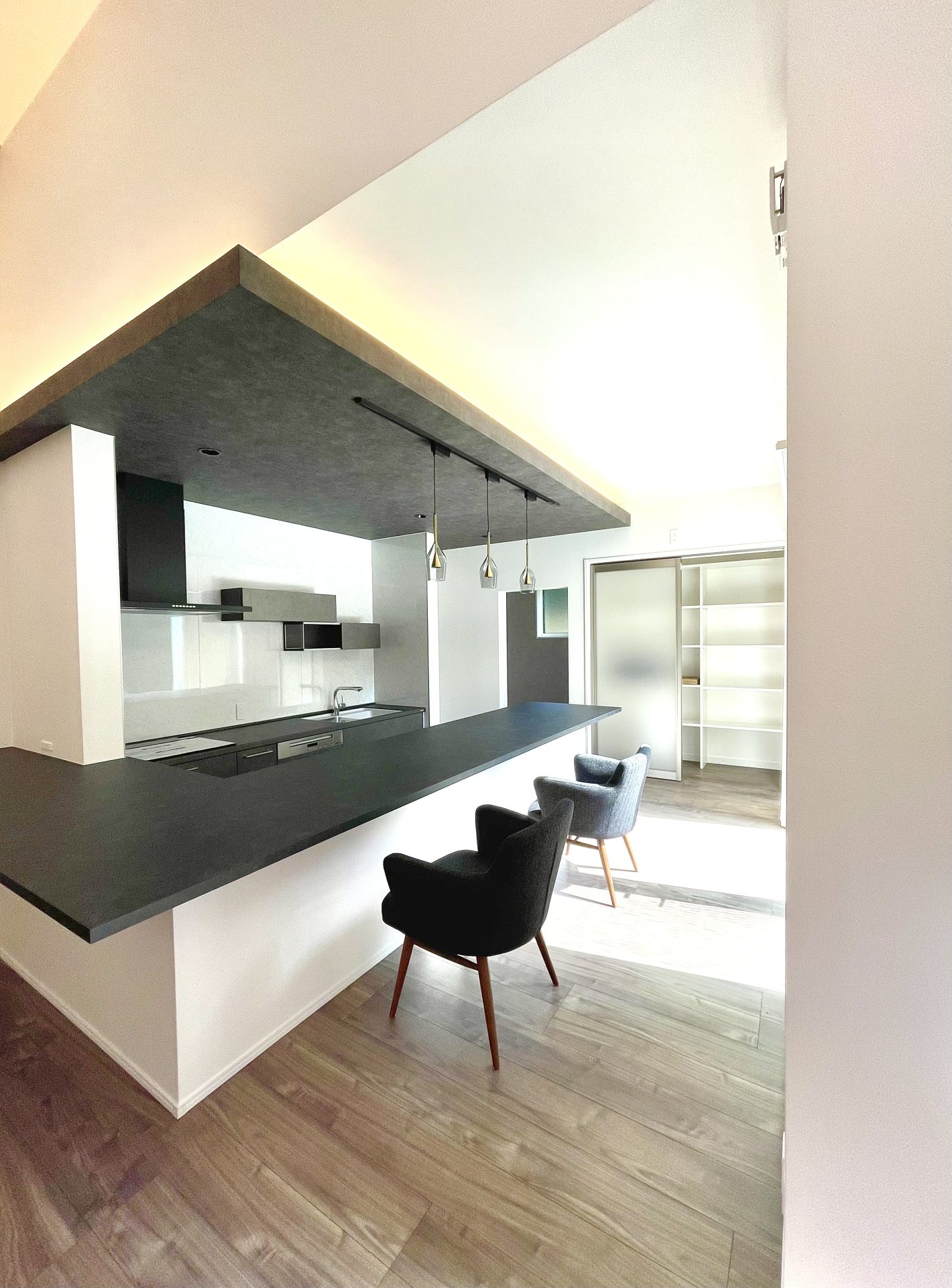 お店のようなモダンなキッチンダイニングスタイル。
