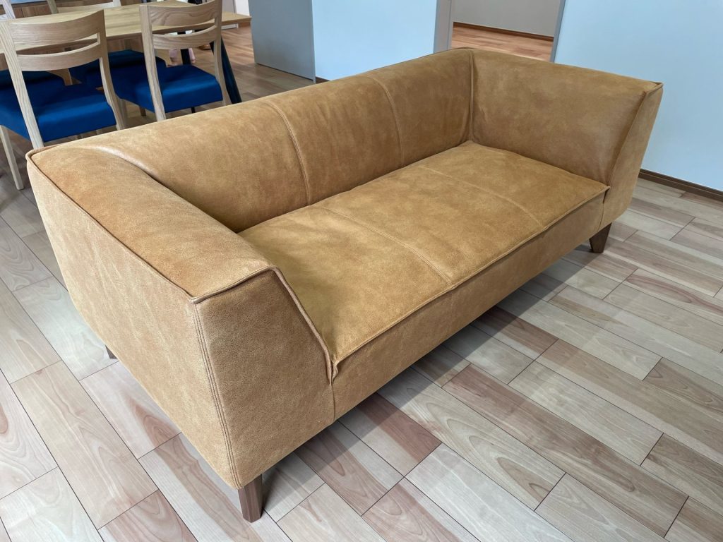 こちらは、ウォールナット無垢材にヌバック生地を合わました(^ ^)