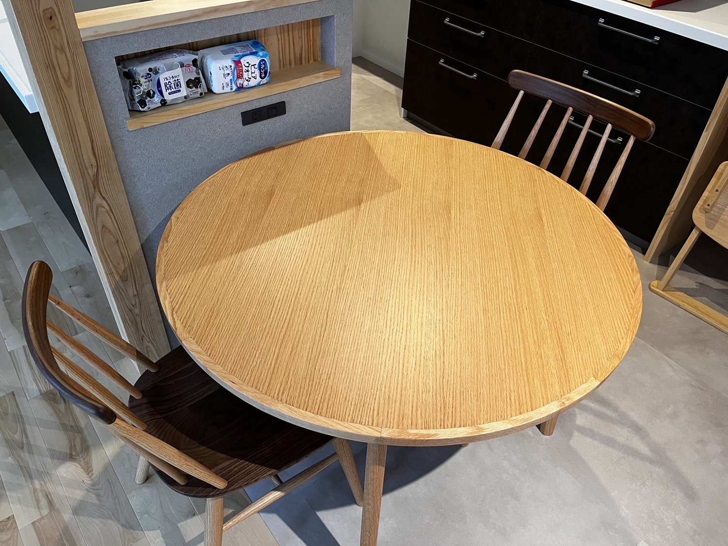 丸テーブルはゆったりとお使いいただける丁度の大きさ100cm丸。